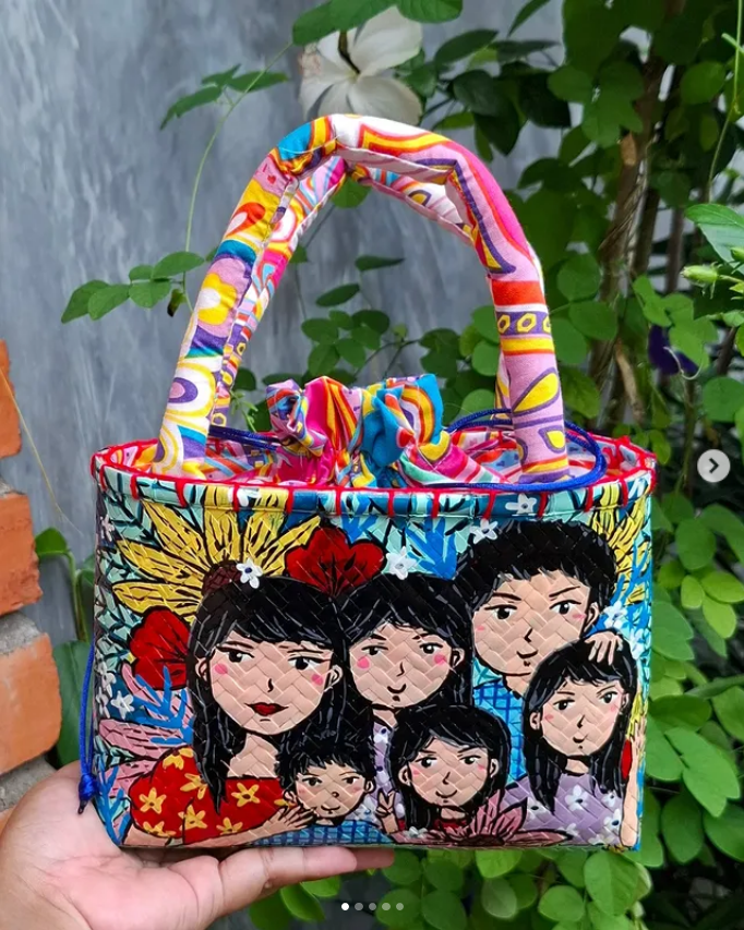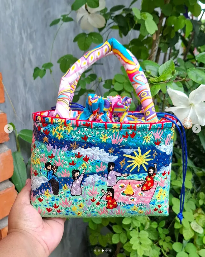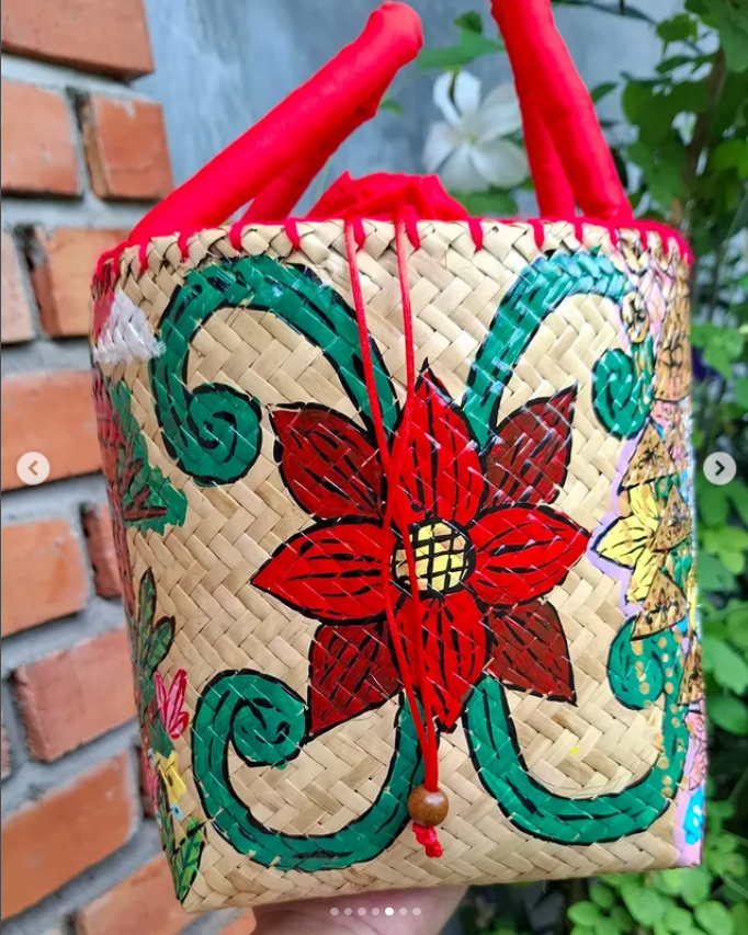 Ayumu Gendout's is a brand that produces bamboo/ purun painting bags and fabric embroidery with the theme of Indonesian stories and also produces earrings by processing unused fabrics and cowhides into beautiful accessories.