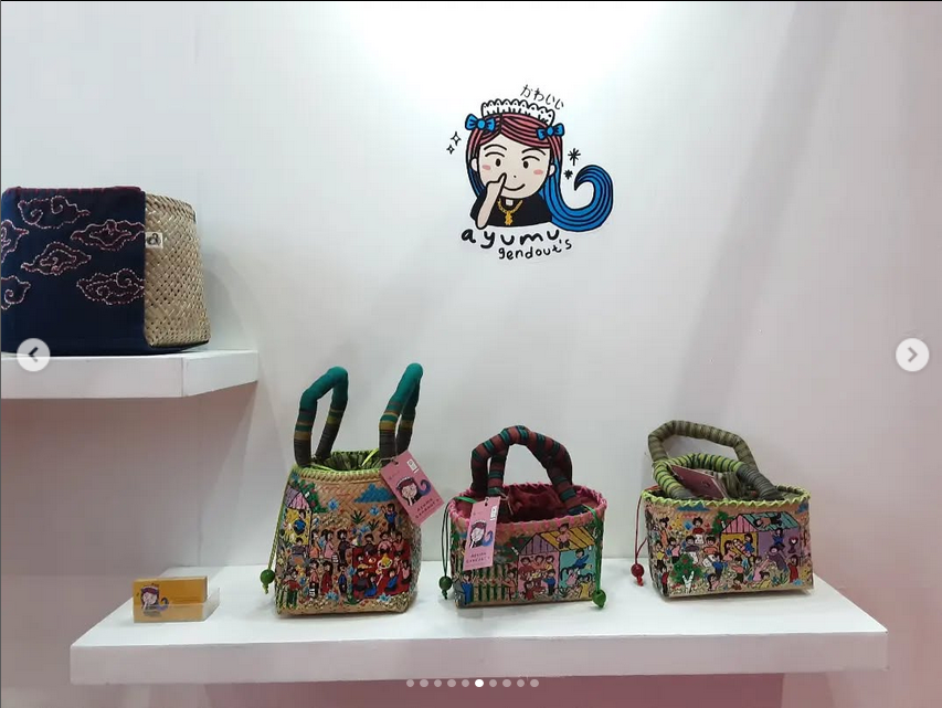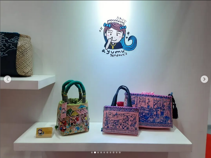 Ayumu Gendout’s is a brand that produces bamboo/ purun painting bags and fabric embroidery with the theme of Indonesian stories and also produces earrings by processing unused fabrics and cowhides into beautiful accessories.