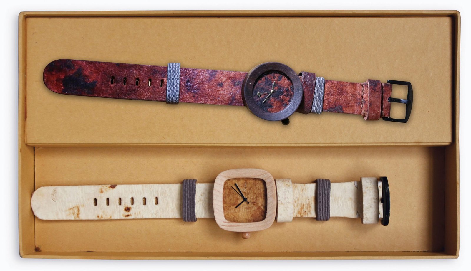 Desain jam tangan Pala Nusantara ini terbilang unik. Selain terbuat dari kayu, bentuknya yang besar dan tebal, dengan knop pengatur berwarna merah menyala, mampu menyita perhatian