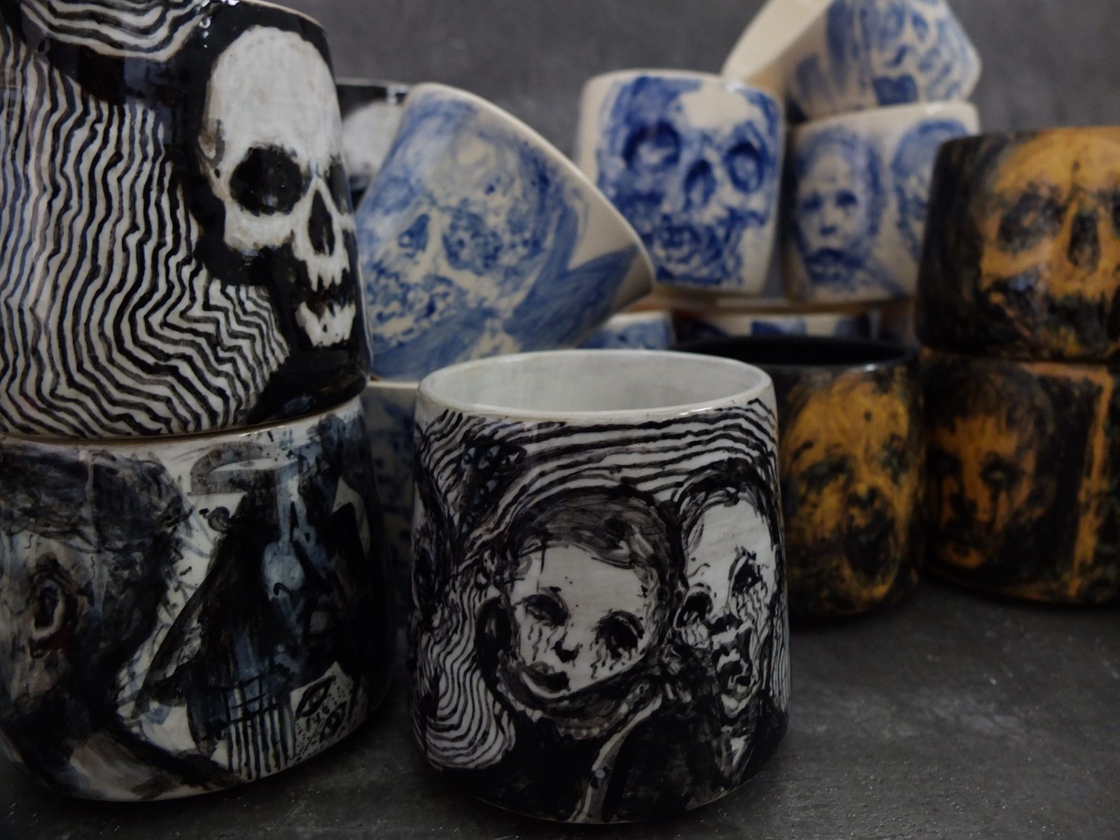 Handmade pottery with freehand drawing